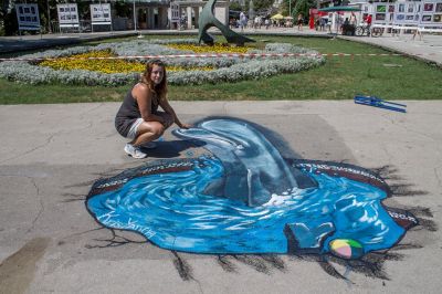 До дни предстои да се поставят указателни надписи до рисунката как да снимаме делфина, за да го видим в цялата му прелест.