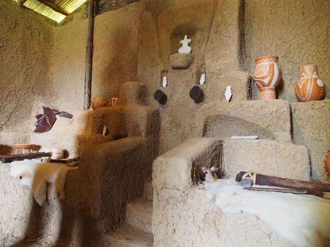 Първата част от еккспозицията включва възстановки на неолитни жилища и бит на древните хора.