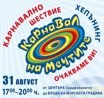 Днес, 31 август от 17.00 ч., предстои цветно карнавално шествие и хепънинг, с името „Карнавал на мечтите“. Инициативата е вдъхновена от идеята „Варна – европейска столица на културата 2019 г. Този проект се реализира с финансовата подкрепа на Община Варна, спонсори и дарители.