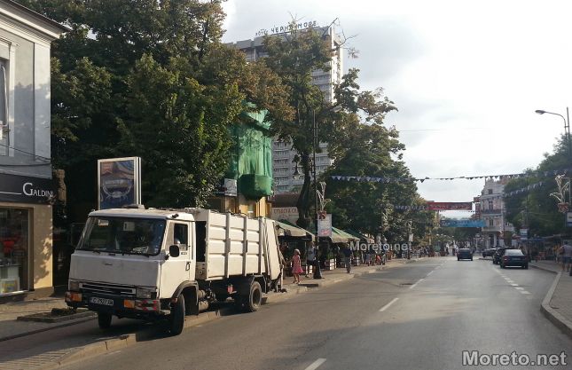 Камион на сметопочистваща фирма се покачи върху тротоар в центъра на Варна, видя репортер на Moreto.net. Действието се разви малко преди 17.30 часа в петък вечер пред смаяните погледи на група туристи, преминаващи по тротоара.