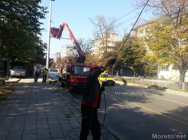 Продължава премахването на незаконните кабели във Варна. В момента работна група отстранява висящите кабели по бул. "Осми Приморски полк" в района между бул. "Чаталджа" и бул. "Цар Освободител", видя репортер на Moreto.net.