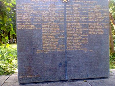 В костницата са погребани тленните останки на 423-ма офицери, подофицери и войници. 240 от имената на воините са гравирани върху лицевите плочи на постамента, а останалите - върху северната и южната паметни плочи.