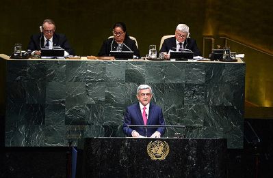 В средата на септември започна шестото заседание на шестдесет и деветата асамблея на ООН. В него взеха участие десетки държавни глави от целия свят - сред тях и президентите на Армения и България. На 24 септември президентът на Армения – Серж Саркисян, държа рядко срещана в средите на международната дипломация реч. В нея той каза следното: