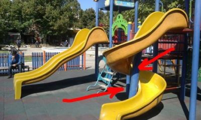 Площадката е сравнително нова, на не повече от 5 години. Наскоро обаче коритото на пързалтака се е отлепило от конструкцията и се клати при всяко спускане на децата.