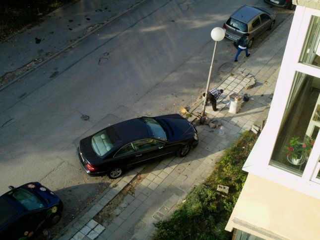Снимка на кола, паркирала върху тротоар, който в този момент се ремонтира ни прати читател на Moreto.net.