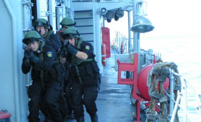 Едновременно с това се провеждаха тренировки и учения. Групата за проверка на кораби от състава на екипажа на фрегата „Верни” проведе тренировки по качване и слизане на кораб-нарушител и по осигуряване на периметъра и претърсване на кораб-нарушител. Провеждаха се и учения по откриване, водене и долагане на надводни и въздушни цели, корабни бойни учения по „Борба за живучест”, включващи борба с пожари, взривове и нахлуваща вода, симулирано използване на противокорабно, противовъздушно и противолодъчно оръжие, използване на малокалибрено артилерийско въоръжение за защита на кораба от бързо движещи се малки морски цели, спасяване на паднал човек зад борд, както и отработване на разписание по приемане на гориво на ход.
