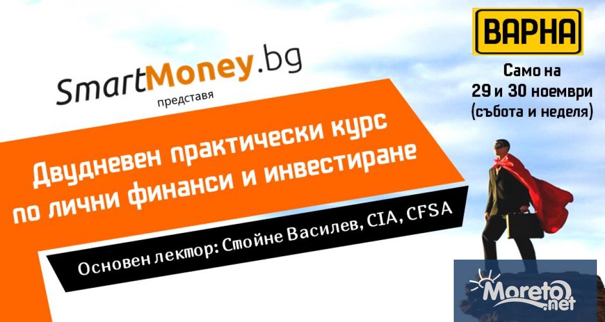 Най-популярният български сайт за управление на пари - SmartMoney.bg и Българска асоциация на личните финансови консултанти (БАЛФК) организират двудневен (уикенд) курс по лични финанси и инвестиране във Варна на 29 и 30 ноември в Конферентна зала №2 на хотел Черно Море.