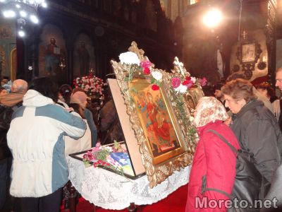 Те бяха официално посрещнати в сутрешните часове на днешния празничен ден в Катедралния храм „Св. Успение Богородично“, а след това с литийно шествие отнесени до храм „Св. Атанасий“, където ще останат за постоянно, предаде репортер на Moreto.net.