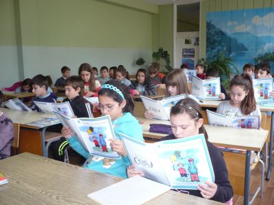 Учениците презентираха книжка за най-малките „В света на разделното събиране и рециклиране на отпадъци", която по занимателен начин, чрез игри, гатанки, стихчета и ребуси, представя полезна информация за системата на разделно събиране на отпадъци и идеи за намаляване на отпадъците от хартия, пластмаса, стъкло и метал.