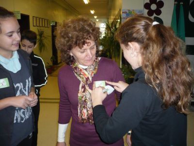 С желание и ентусиазъм ученици се включиха в акцията по раздаване на стикери, с мотото на кампанията „От нас зависи утрешния ден" и в дискусия на клип „Стъпка по стъпка", създаден от ученици в гимназиален етап, с идеи за пестене на енергия и ресурси.