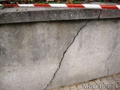 Оградата към бул. „Княз Борис Първи“ на варненската Търговска гимназия „Г.С. Раковски“, е опасно наклонена от известно време, забеляза репортер на Moreto.net. Самата ограда, която не си знае годините, е напукана от всички страни, металните й части също не са пожалени.