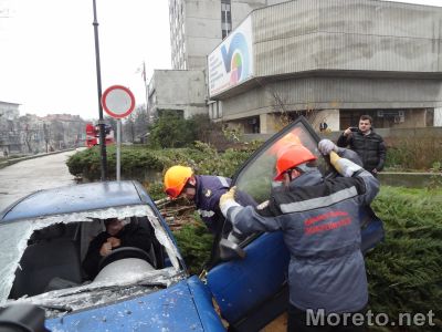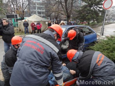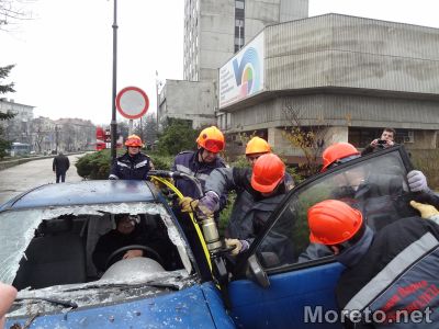 Отрядите показаха нагледно как се спасява човек от високите етажи на горяща сграда. Направена бе и демонстрация по спасяване на пострадал от затисната кола при буря от дървета и клони.