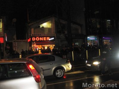 Поне 150 млади хора наблюдаваха снощи случка на светофара на Червения площад в платното в посока центъра, видя репортер на Moreto.net. Малко след 23 часа „БМВ“ с варненска регистрация се удари в „Рено Меган“ пред него. Жената зад волана била шокирана, за щастие видими щети по автомобила й нямаше. Потърпевшата и съпругът й отказаха коментар, след като екшънът се размина.