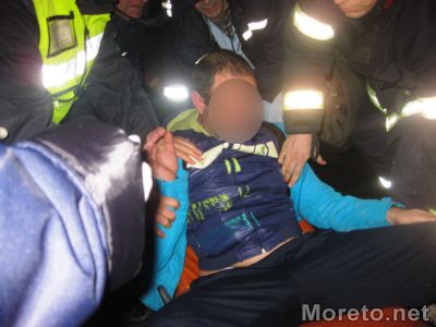 Един от спасителите строши със замах лявото задно стъкло на колата. Оказало се, че мъжът в немската кола не само е неадекватен, имало предположения, че е и друсан, но държи крака си на педала на газта. След като пожарникарите успели да откопчат собственика от возилото, той е бил положен на носилка. Мъжът се усмихвал пиянски и когато го вкарвали в линейката.