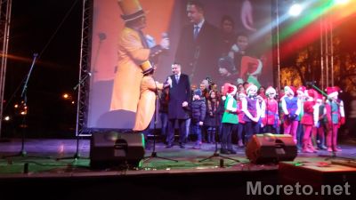 Скъпи деца, желая ви от сърце много радост, щастие и дядо Коледа да изпълни всички ваши желания. Желая на всички хубави спокойни и светли празници!“, каза кметът на града Иван Портних секунди преди запалването на празничните светлини.
