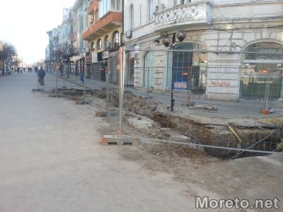 Вече тече работа и по третия етап от ремонта на центъра, който обхваща трасето от площад „България“ до хотел „Черно море“. Отстранена е част от асфалтовата настилка. Започнати са и изкопи за смяна на подземни комуникации. На място вече има струпани тръби за подмяна.
