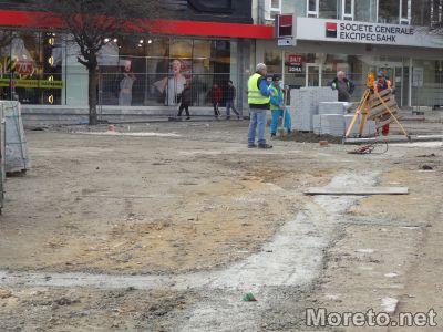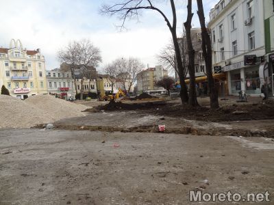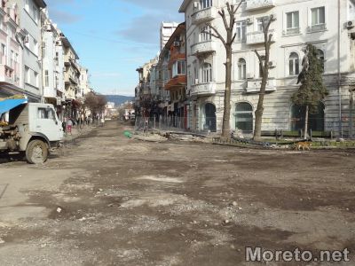 Усилено тече вече ремонтът по третия етап от трансформацията на централната пешеходна зона, който обхваща терена от площад „България“ до хотел „Черно море“. В отсечката е премахната изцяло асфалтовата настилка. На места вече са започнати и изкопи за подмяна на тръби и подземна комуникация, видя репортер на Moreto.net. Стартирането на работата по последния етап от трансформацията на пешеходната централна зона още преди завършването на втория и отстраняването на нередностите по първи се налага, за да може да бъде завършен проектът в срок. Той изтича през май 2015-та.