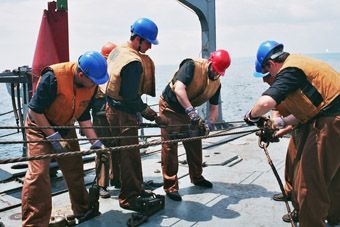 Всекидневие на море на палубата на базовия миночистач „Цибър”