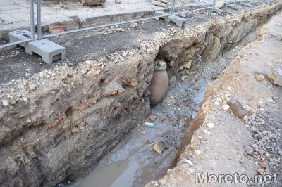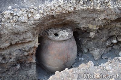 Близо месец ще продължи работата на варненските археолози по изваждането на огромния керамичен съд, който бе открит при изкопни работи до храма „Свети Николай Чудотворец“. Това съобщи за Moreto.net доц. Валери Йотов, който работи по проекта заедно с ръководителя Александър Минчев.