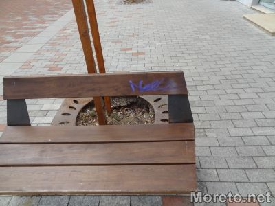 Новите пейки на центъра също са жертва на така наречената неформална градска култура. Посегателството не е само върху стените, но и върху рекламите на магазините.
