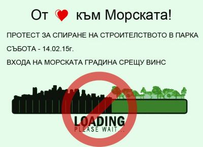 Мирен протест "От любов към Морската" организират днес варненци. Поводът е строителство пред Делфинариума. Сборният пункт на протеста е в 14 часа на входа на Морската градина срещу Икономическия университет. Това съобщи за Moreto.net председателят на Сдружение "Варна диша" Славена Панайотова.