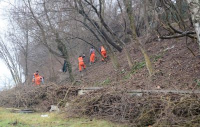 „В момента работниците почистват ската между главния път и дворовете на прилежащите имоти, подпорната стена и канавката. Премахват сухи клони, лиани и битови отпадъци“, съобщиха от общинската дирекция „Инженерна инфраструктура“.