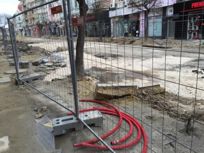 Спукана тръба е наводнила част от участъка, в който се извършват ремонтни дейности в центъра на Варна.
