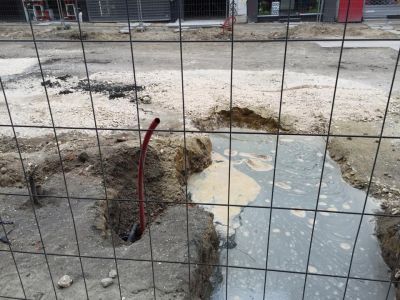 Спукана тръба наводни изкопните работи в центъра на Варна