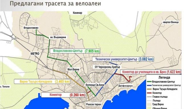Подписан е договорът за изграждането на 16 километра велоалеи и 50 броя съоръжения за паркиране на велосипеди във Варна. Това обяви чрез личния си профил във фейсбук кметът Иван Портних. Дейността е част от проекта за интегриран градски транспорт. Общата сума за изграждането на велоалеи и стоянки е 5.5 млн. лева, научи Moreto.net.