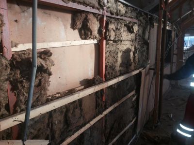 Изграден е мостреният участък на вътрешната и външна обшивка на зала „Конгресна“. Системата за сухо строителство включва два слоя гипсокартон, изолационна и негорима вата, както и краен външен слой от специални негорими панели, които във вътрешната част на залата ще бъдат и звукоизолационни.