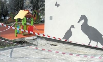 Най-новата детска градина във Варна "Жирафче" претърпя поражения пет месеца след въвеждането й в експлоатация. Те се изразяват в хлътване на няколко метра от тротоара по ръба на стената на сградата. Освен това е започнала да пропада и една от четирите площадки за игра. Най-вероятната причина е слягане на канализацията, която преминава там.