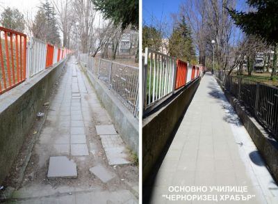 490 кв. м. са ремонтирани в района на IV-та гимназия , а 940 кв. м. в района ОУ „Черноризец Храбър“. Изцяло ремонтирана е и пешеходната алея, която свързва училището с ОДЗ „Дружба“. Ремонтите продължават.