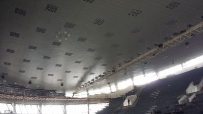 Спортният журналист Румен Генов лично провери как изглежда днес Двореца: В последните дни ремонтът се движи с особено сериозни темпове. Почти във всички съблекални плочките са сложени, а таванът в залата също е към приключване.
