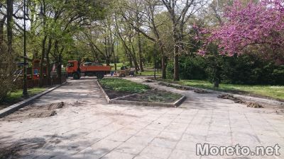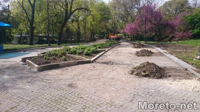 Ремонтът на алеите в Морската градина във Варна продължава да тече с пълна сила. Из парка се забелязва движение на машини, които помагат за извършването на дейностите. Бригади от работници пък се грижат за оформянето на новите бордюри на алеите и цялата работа, която е необходимо да се свърши на ръка, видя репортер на Moreto.net.