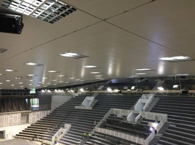 „Вече инсталирахме и тествахме системата за управление на осветлението в залата. Всичко работи нормално и в предвидените норми“, коментираха изпълнителите на обекта. Те допълниха, че всички осветителни тела в залата са подменени. Премахнати са всички живачни лампи, които са силно токсични и опасни за посетителите. Отстранени са и лампите с нагряваща жичка, които пък са много слабо енергоефективни. На тяхна място са поставени LED и метал-халоген осветителни тела. „Тъй като при изключване на метал-халогенните осветителни тела е необходимо технологично време за тяхното повторно стартиране, комбинирахме ги с LED лампи, които да осигурят непрекъсване на осветлението в залата при кратковременни прекъсвания на електрозахранването“, казаха още изпълнителите.