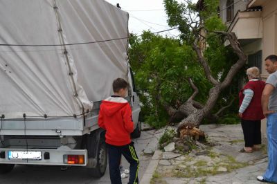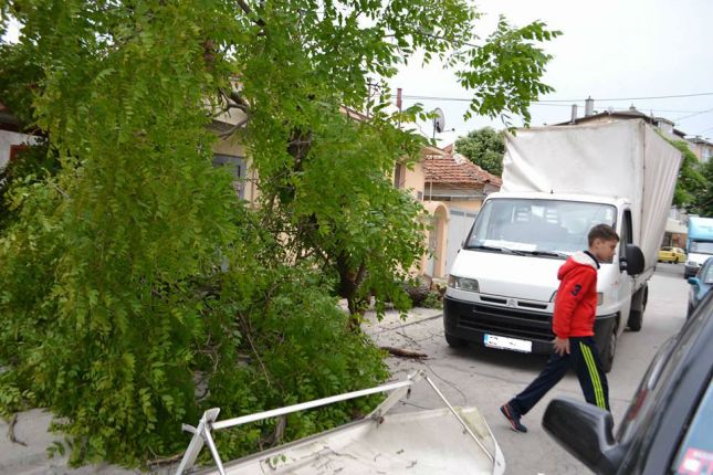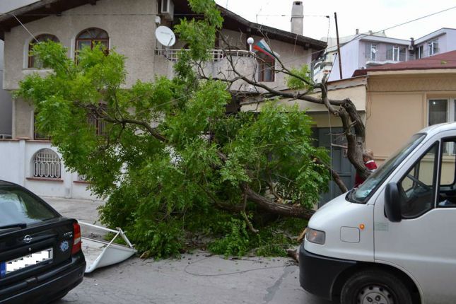 Високото около три метра камионче, с "помощта" на жиците на варненските кабелни и интернет доставчици, е повалило съвсем здравото дърво на ул."Aкaдемик Ф. Успенски" във Варна.