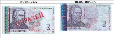 В Националния център за анализ към БНБ е регистриран нов тип неистински банкноти от 2 лева, емисия 2005 г.
