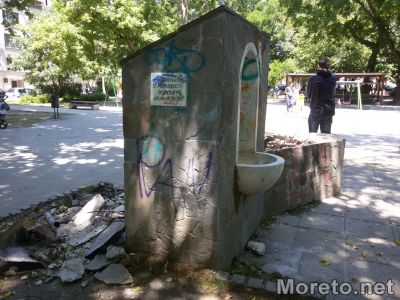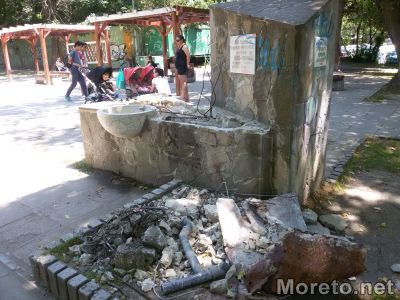 Явно местната власт се е захванала да ремонтира обекта, защото от чучурите му не тече вода от години. Защо обаче работниците са разбили чешмата и са я оставили така с дни, не е много ясно. Отделен е въпросът, защо като се ремонтира един обект, той не се обезопасява по никакъв начин, макар и наоколо да играят малки деца.
