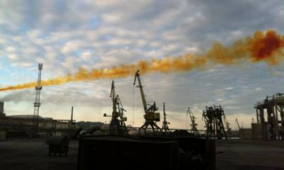 Оранжев дим паникьоса девненци в понеделник вечерта, сигнализираха читатели на Topnovini.bg. Цветният пушек е излизал от комин на цеха за азотни киселини на торовия завод "Агрополихим".