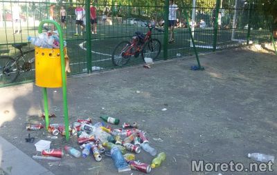 Макар и недовършен окончателно, наскоро обновеният парк в квартал "Владиславово" вече тъне в боклуци. Кошчетата за смет край алеите преливат от бутилки и кенове за бира, а в цветните лехи се търкалят пластмасови и найлонови отпадъци, съобщиха читатели на Moreto.net.