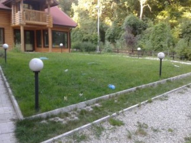Край къщата е пълна мизерия, на полянката отпред има всякакви боклуци, включително чувал от кучешка храна.
