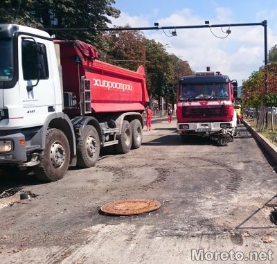 Започва асфалтирането на горното платно на булевард "Осми Приморски полк" в участъка между "Чаталджа" и булевард "Цар Освободител", видя репортер на Moreto.net.