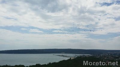 И във Варна се забелязва миграцията на щъркелите. Ято от чернокриллите птици бе заснето от репортер на Moreto.net.