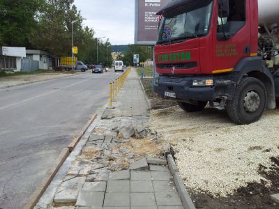 Читател: Бетоновоз унищожи тротоара край Техническия университет във Варна