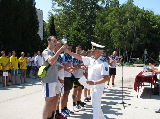 Командирът на Военноморските сили контраадмирал Митко Петев връчи на победителите купи, медали и спортни екипи.
