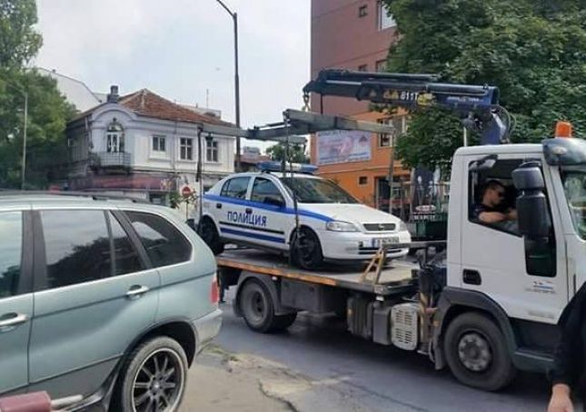 Снимка на общински паяк, вдигнал полицейска кола, изпрати читател на Moreto.net на редакционната ни поща.