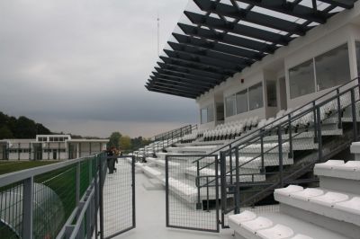 Трибуните за зрители са разположени до северната страна на игралното поле и са с 640 седящи места. Разделени са на блокове. Централният блок „С”, над който има козирка, е със 160 места - 48 във VIP ложата и 112 обикновени, а пред него има 4 места за хора с увреждания. Двата странични блока – „А” и „В” са с по 240 места. В централния блок, на второ ниво са разположени две помещения за журналисти с всички необходими комуникации, както и командно-наблюдателен пункт. На трибуната има две тоалетни за мъже, и по една за жени и за хора с увреждания.
