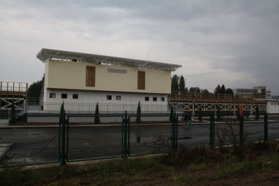 В югозападната част на спортния комплекс „Тича” е изградена обслужваща сграда, която се намира непосредствено до паркинга. Тя има две функции и затова в нея са обособени две главни зони за достъп – едната е смесена /за спортисти и посетители/ с модерно санотирано-битови помещения, а другата е само за спортисти и спортно-технически лица. Те разполагат с модерни съблекални, помещения за релакс, има лекарски кабинет, стаи за съдиите и пр.