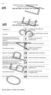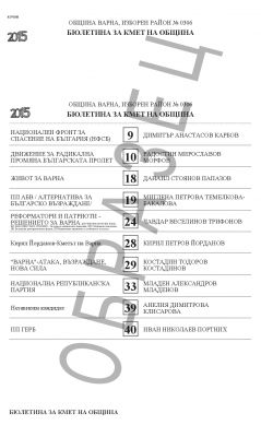 По долу може да видите образци на бюлетините, с които се гласува на местния вот във Варна, съответно за кмет на община, за общински съветници, за районен кмет.
