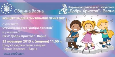 Тази седмица малките приятели на музиката и техните родители получават специално неделно предложение от Националното училище по изкуствата (НУИ) „Добри Христов“ и Община Варна. На 22 ноември от 11 ч. в Градската художествена галерия „Борис Георгиев” нови музикални приказки ще запознаят по забавен и увличащ начин малчуганите с възможностите на музикалните инструменти. Тези интерактивни спектакли за деца от 3 до 10-годишна възраст се превърнаха вече в традиция и се очакват със силен интерес от родителите, съобщиха организаторите за Moreto.net.